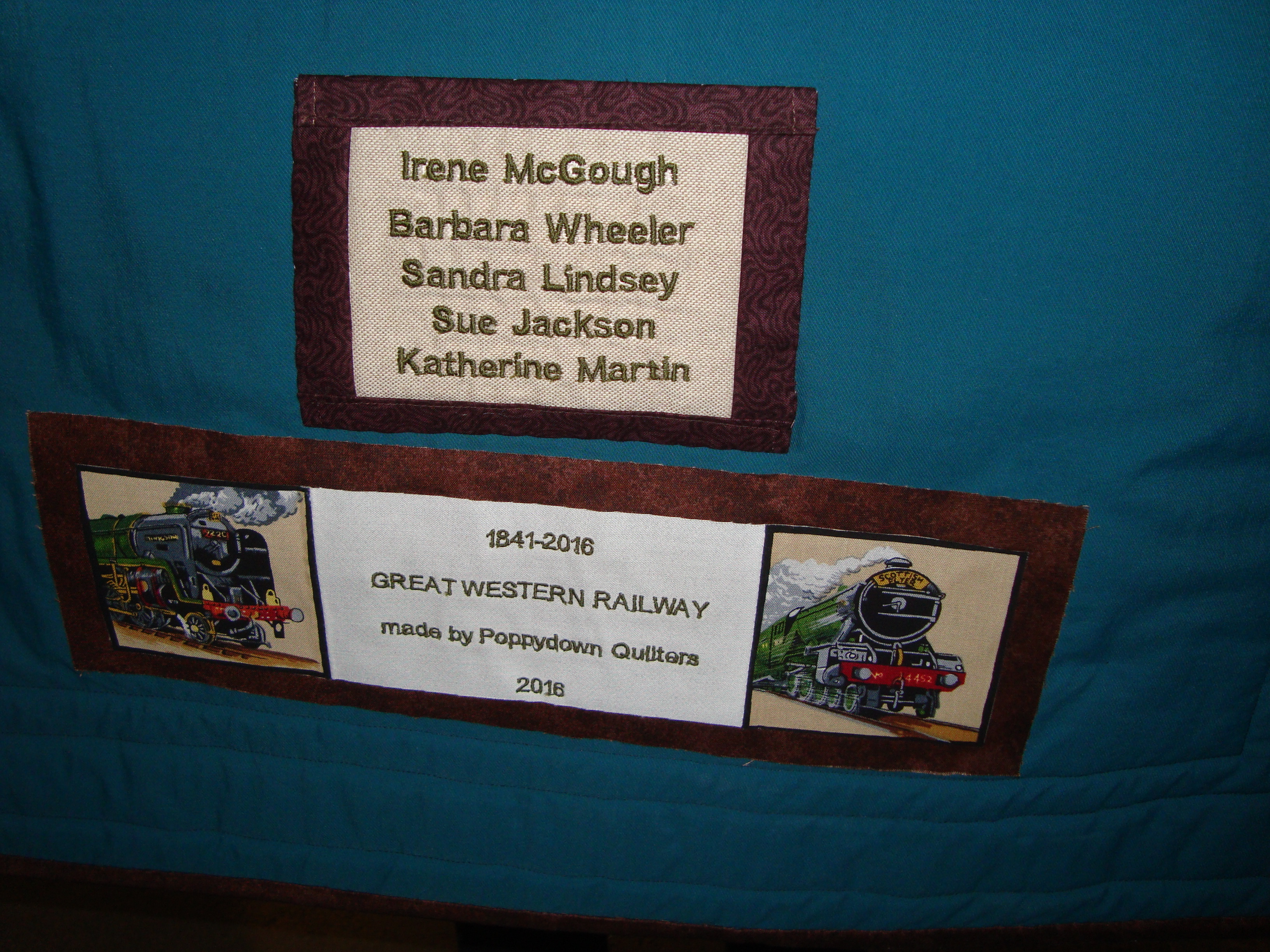 On the 1st of November, as part of the 175th Anniversary celebrations, members of our Poppydown Quilters’ Group met with Caroline Black, Project Co-ordinator and Ian Surtees, Steam’s Income Generation Manager to hand over the Anniversary Banner made by ladies from our Group: